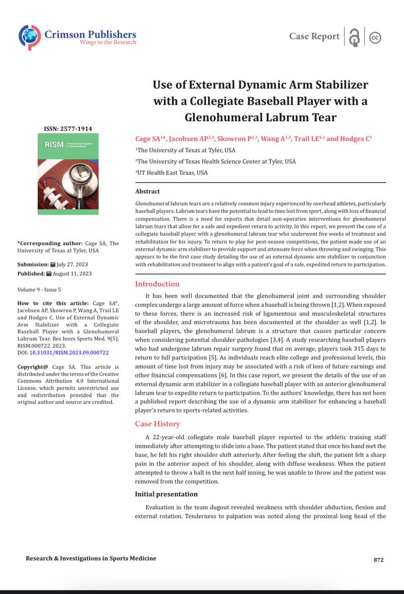 Research has included athletes across competitive levels—from collegiate programs to professional environments—providing insight into how dynamic external support may influence arm mechanics, workload management, and movement efficiency during repetitive and overhead motion.